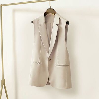 韓国ファッション スーツ アウター レディース ゆったり 百掛け 通勤 タンクトップ ベスト アウター ショット丈 トップス ベスト