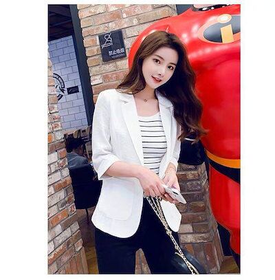 【2枚購入で 2oo円OFF】2024新作 OLスーツジャケット 7分袖 アウターリネン アウター レディース ミディアム丈 オフィスカジュアルジャケット