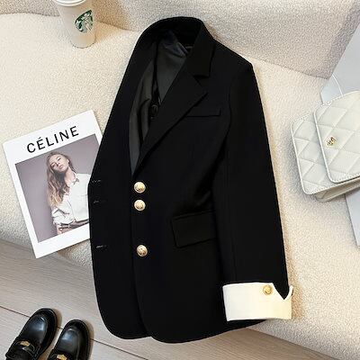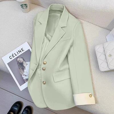 クリームブレザーレディース2024春新作韓国風デザインニッチファッショナブル気質通勤小さめさめスーツ