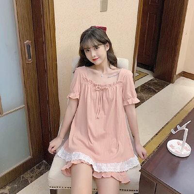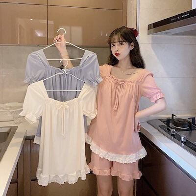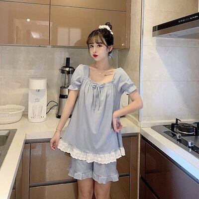 パジャマ レディース 夏 新作 綿 レース 半袖 ショートパンツ かわいい ホームウェア ツーピーススーツ