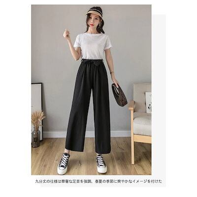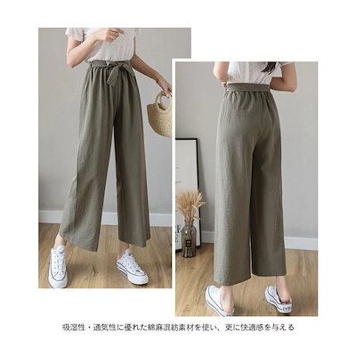 万能流行感 ワイドパンツ リネン レディース バギーパンツ リネンパンツ ゆったり 薄手 イージーパンツ 夏 ウエストゴム サマーパンツ 快適 9分丈パンツ