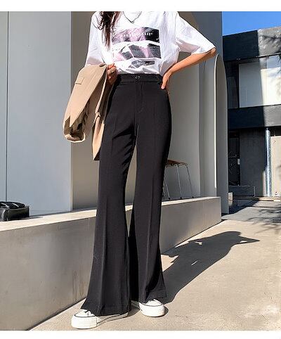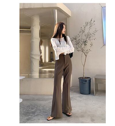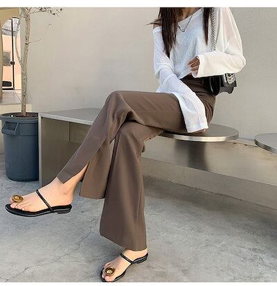 フレアパンツ レディース スリット 無地 バギーパンツ ワイド パンツ ハイウエスト ロングパンツ ボトムス 裾フレア きれいめ ゆったり 落ち感 リラックス シンプル カジュアル 可愛い 体型カバー | Jeannede ジャンヌデ