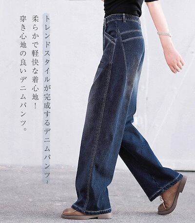 デニムパンツ レディース ワイド ジーンズ ゆったり バギー ボトムス チノパン 大きいサイズ ワイドパンツ 春 カジュアル ズボン ウエストゴム 大きいサイズ 柔らかいデニム ゆったり 体型カバー