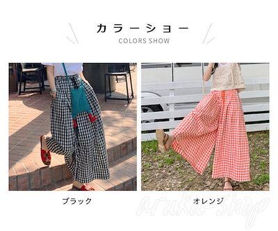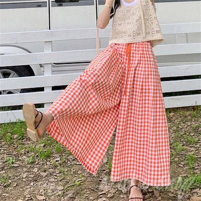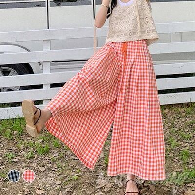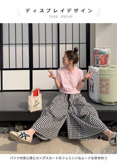 秋 イージーパンツ チェック柄 キュロット 春夏 九分丈 バギーパンツ ロング キュロットスカート レディース ギンガムチェック