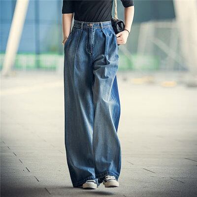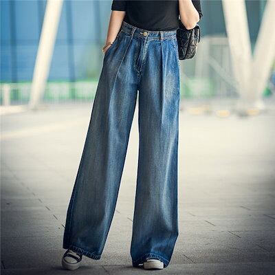 パンツ デニム レディース 秋 ボトムス ジーンズ ズボン ジーパン ガウチョパンツ ワイド バギーパンツ ハイウエスト ロング丈 ストレートパンツ