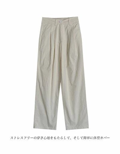 ワイドパンツ レディース ストレートパンツ タック入り チノパン 体型カバー ハイウエスト タックパンツ 春 秋 長ズボン ロングパンツ バギーパンツ チノパンツ 無地 シンプル ボトムス カジュアル