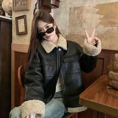ライダースジャケット裏起毛 冬アウター ゆったり ショート pu レザージャケット 韓国ファッション シンプルトップス 革ジャンレディース 着痩せ コート裏起毛ファッションジャケット