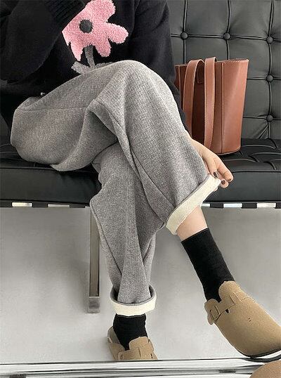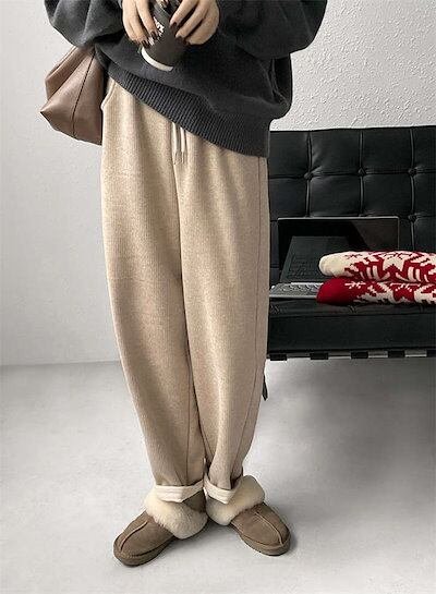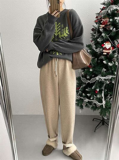 ウエストゴム あったか ベージュ L グレー 長ズボン パンツ 防寒 裏ボアパンツ 裏起毛 厚手 ブラック 秋冬 スウェット ゆったり レディース ロング ジャージパンツ ボトムス 美脚 暖か 防寒対