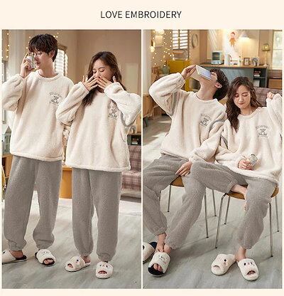 ペア パジャマ スウェット 上下 セット セットアップ もこもこ メンズ レディース パジャマ ペア プルオーバー マイクロファイバー 裏起毛パンツ 厚手 おしゃれ 部屋着 長袖 ペアルック