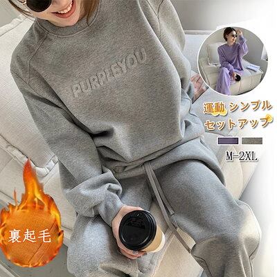 2枚購入で 2oo円FF!24新作 カジュアル セットアップ レディース 裏起毛 厚手 パーカー スウェット 運動 ワイドパンツ 二点セット 着痩せ 大きいサイズ 裏起毛ファッション3