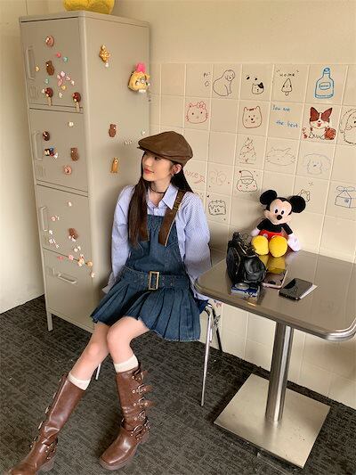2024 春夏 甘辛MIX 2点セット ハイウエスト シャツ タイトスリム韓国 ブラウス 長袖トップス ボトムスワンピーススカートショート丈スタイルアップ ゆったりお出かけ休日可愛いおしゃれカジュアル