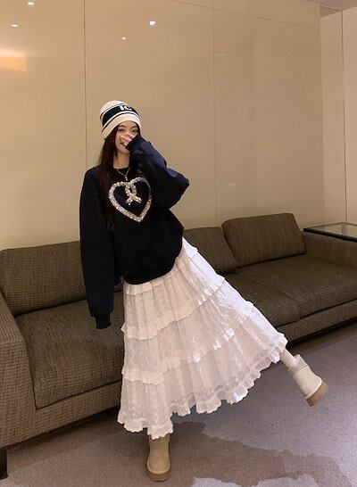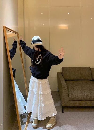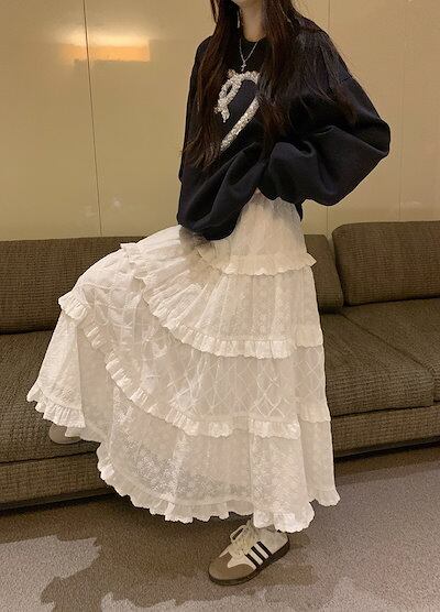 2024 春夏 甘辛MIX 2点セット ハイウエストホワイトtシャツレディース韓国長袖トップス ボトムス Aラインスカートショート丈シルエット スタイルアップゆったりお出かけ休日可愛いサイズおしゃれ