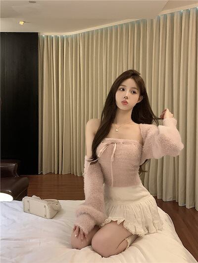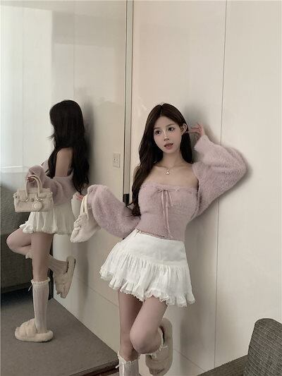 2024春夏 カーディガン タンクトップショート2枚目Vネックレディース韓国羽織りゆったり カジュアル アランニットセーター スタイルアップお出かけフレンチきれいめ大人っぽファッション色っぽ 女っぽ