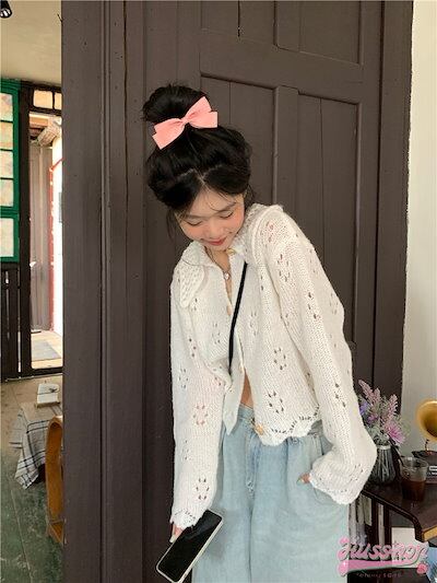 2024春夏トップス ニット 二枚重ね風 重ね着風 カーディガン Vネック ボタン 長袖 春 ゆったり グリーン 緑 韓国ファッション レディース おしゃれ かわいい カジュアル お出かけ