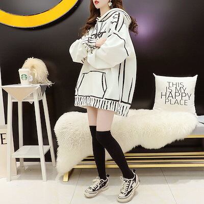 韓国 パーカー厚手のフード付きスウェット ルーズフィットで汎用性の高いデザインスウェットスウェット