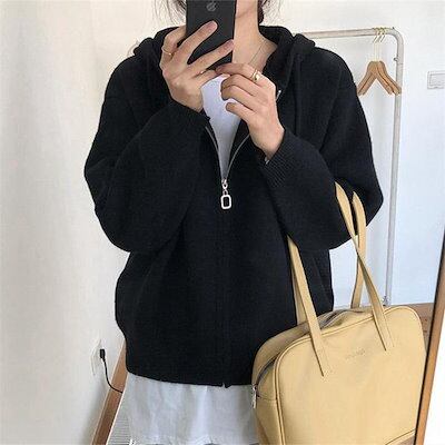 韓国 パーカー 韓国 スウェット ニット レディース ジップアップ ニット韓国 パーカー セーター トップス カーディガン アウター 羽織り 長袖 お洒落 フード付き韓国 パーカー