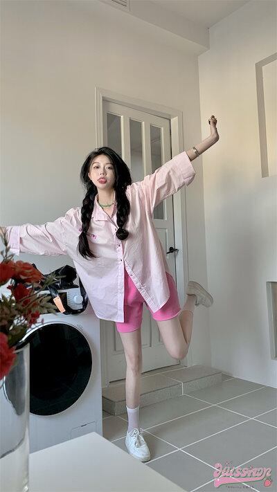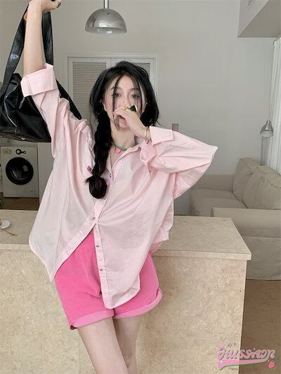 2024春夏トップス シャツ ブラウス 長袖 ボタン 襟 スタンダードカラー 春 ピンク ゆったり 丈長め かわいい ガーリー 甘め おしゃれ 韓国ファッション レディース お出かけ