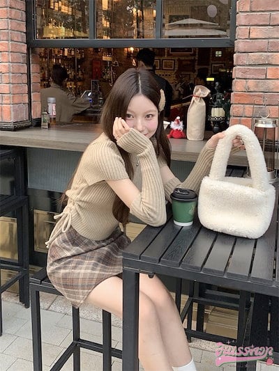 2024春夏トップス ニット モックネック 半袖 アームカバー サムホール 親指空き リボン 秋冬 韓国ファッション レディース おしゃれ かわいい カジュアル お出かけ