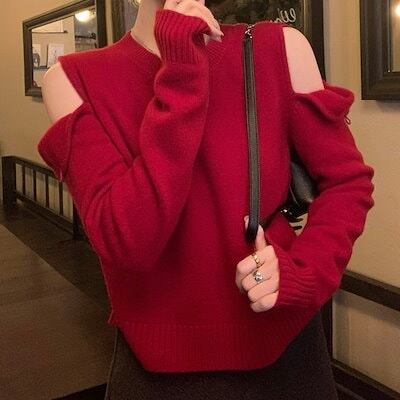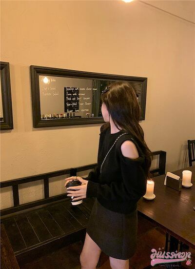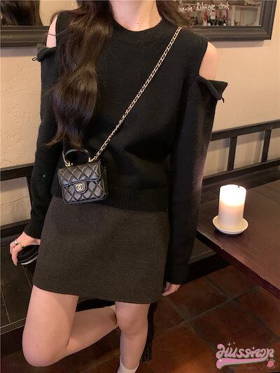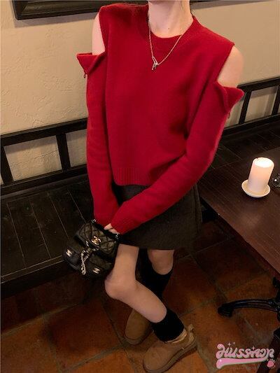 2024春夏トップス ニット セーター オープンショルダー 肩出し ラウンドネック 長袖 春 ゆったり 韓国ファッション レディース おしゃれ かわいい キュート カジュアル お出かけ