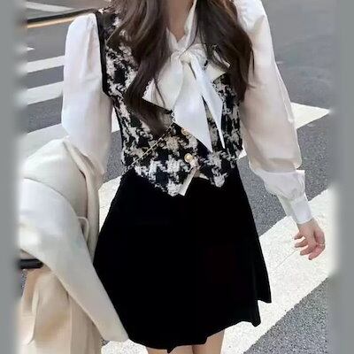2024春夏 3点セットスカート トップス ベスト ショートミニ OL 通勤 レディース セットアップ 上下セットコートコーデ 女っぽ カジュアルフレンチきれいめ 大人っぽ型秋 冬春