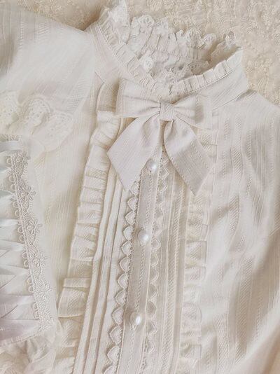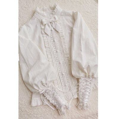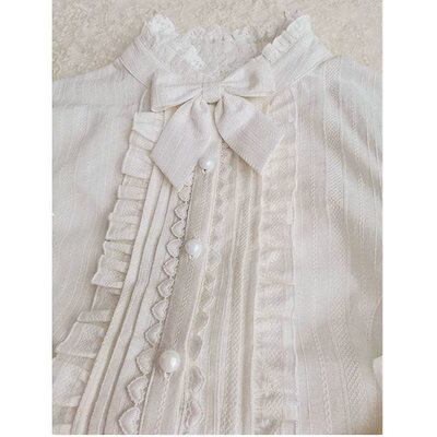2024 春夏シャツ ロリータシャツブラウス レディース マトンガールのロリータ風脚フリルレースロリータ長袖ジャガードシャツ和風 ブラウス 韓国ファッション