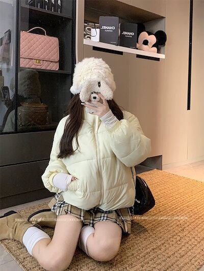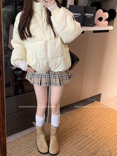 ふっくら中綿 あたたかい 冬 防寒あったか暖かい韓国かわいい ブルゾン 厚手アウター BF風無地羽織るファッション系大人ゆったりカジュアルストリートスタンドネックにサイズ丈シルエット秋レディース黑白