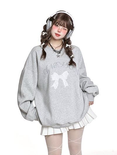 2024 秋冬 トレンド トップス 厚手裹起毛 2type 長袖 かわいいTシャツレディース韓国風ロゴ衣装ルーズゆったりカジュアルおしゃれサイズスリーブシルエットファッション系サイドシャツフット