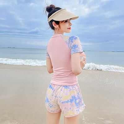 水着 長袖 2点セット 女子 上下セット ロゴビキニセクシーミニ ショート丈 可愛い お姉さんモデル ヨガ ランニング旅行 スイムウェア イイ女 スタイルアップ モテ レディース黑白学生 | Jeannede ジャンヌデ