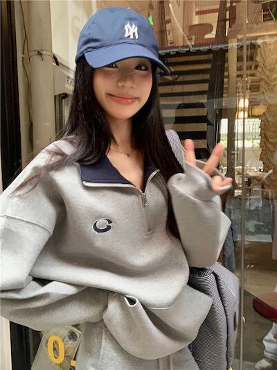 2024 秋冬 トレンド トップス長袖 かわいいK-POPTロング黑白レディース韓国風ロゴ衣装カラールーズゆったりカジュアルハーフおしゃれサイズスリーブシルエットファッション系サイドシャツフット春