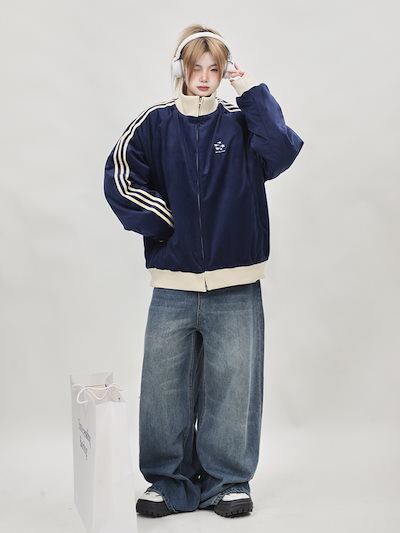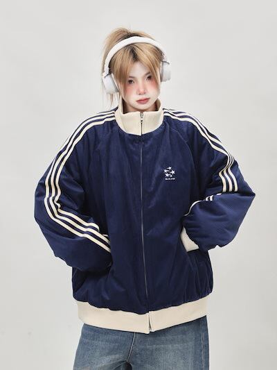 2024 秋冬 韓国 かわいい 厚手中綿入りレディースハイネックスタンドネックアウターブルゾンストリートお出かけ長袖セクシーシルエットトップスサイドカジュアルファッション系サイズお出かけフル丈トラック