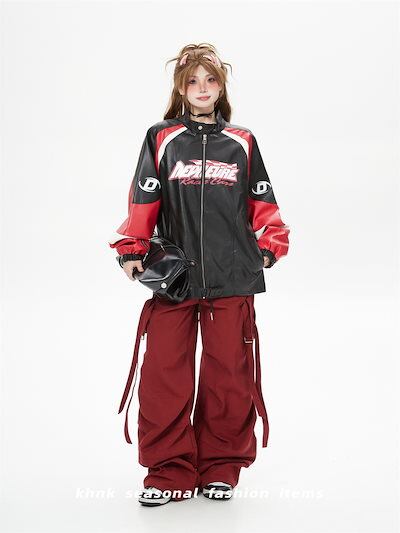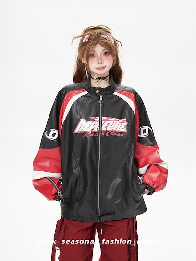 2024秋冬 長袖 ジャケット かわいい ハイネック スタンドネックショート アウター 羽織り合成バイカラーフェイク黑カジュアル シルエットゆったりファッション系サイズ 色っぽ 女っぽきれいめ大人っぽ