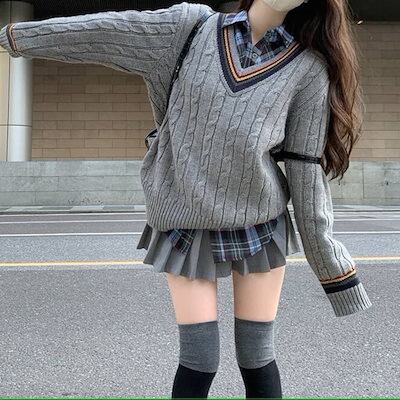 2024秋冬トップス ニット セーター Vネック 長袖 スクールガール 通学 韓国ファッション レディース おしゃれ かわいい カジュアル お出かけ