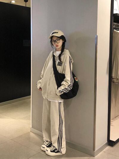 2024 秋冬 2点セット トップス お出かけフード付き 羽織り ショート丈 セットアップフルパーカー ルーズ サイド上下ボトムス ストレート系冬 ゆったりサイズワイドシルエットリラックストラック