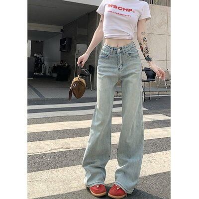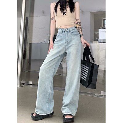 淡い色の星刺繍ストレートジーンズ秋2024新型ハイウエストゆったりワイドパンツ デニムパンツ メガ割