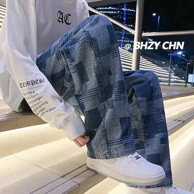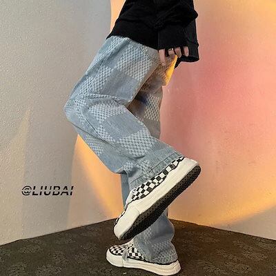 2024春新作 デニムパンツ 韓国ファッション メンズジーンズジーパン ワイドパンツ ファッション チェック柄ストレート刺繍多種のTYPEデニムロングパンツ 福袋