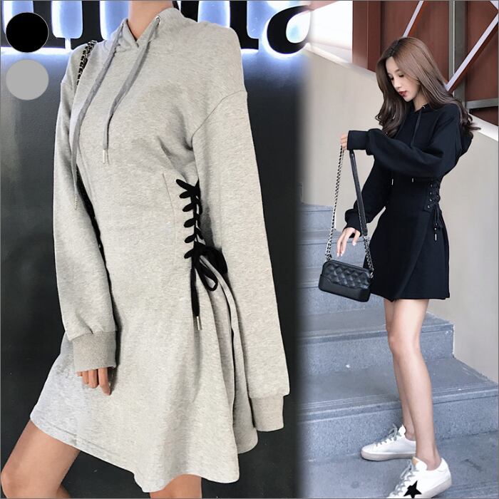 サイドレースアップフレアパーカーワンピースholyholyレディースファッション