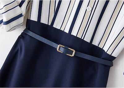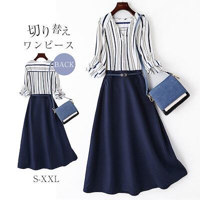 ワンピース ロングワンピース レディース 春 夏 ハイウェスト 切り替え スーツ ワンピース ワンピ 長袖 ミモレ丈 Vネック ストライプ シンプル 秋 オフィス 通勤 オシャレ フォーマル 大人 フ