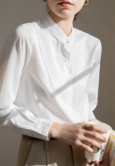 ブラウス シャツ インナー レディース トップス スーツインナー ビジネススーツ 白シャツ 春夏秋冬 長袖 スタンドカラー パール付き パール オフィスカジュアル フォーマル 上品 洗濯可 着痩せ 小
