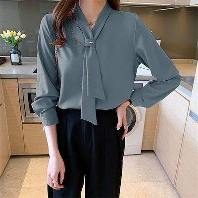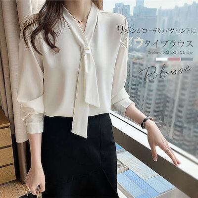 ブラウス ボウタイ 長袖 レディース vネック シャツ フォーマル オフィス 大人 きれいめ お洒落 通勤 ビジネス スーツインナー ショート丈 シンプル とろみ エレガント フェミニン カジュアル | Jeannede ジャンヌデ