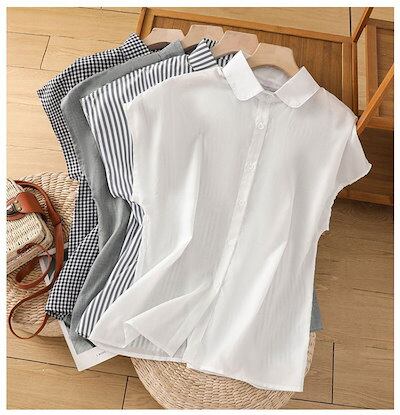 シャツ レディース ブラウス ノースリーブ シャツブラウス ストライプ ギンガムチェック 白 スーツインナー きれいめ シンプル オフィス 通勤 薄手 フォーマル カジュアル OL ゆったり おしゃれ