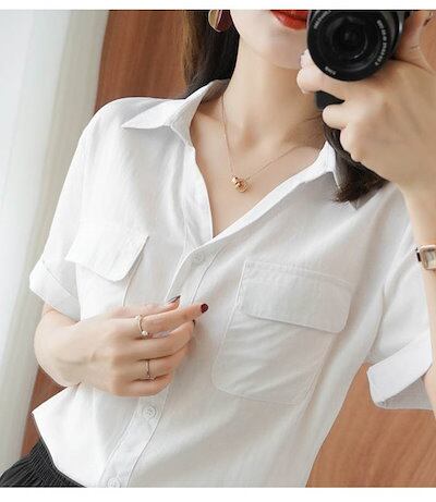 シャツ レディース ブラウス ワイシャツ 無地 半袖 シャツブラウス フォーマル vネック トップス 白シャツ スーツインナー お洒落 可愛い カジュアル オフィス 通勤 OL シンプル ゆったり ベ