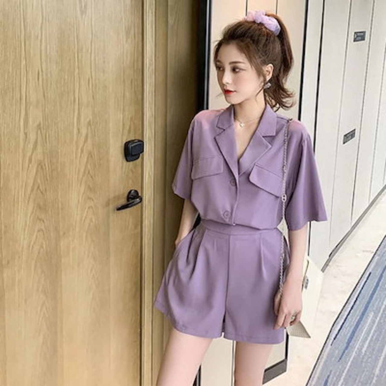 新しいスタイル 2024夏 ルーズ 韓国版 ファッション スモールスーツ パープルショーツ 2セット レディース 薄い スーツ スーツパンツ プロフェッショナル スーツ ファッション ツーピーススー