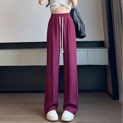 アイスシルクパンツスーツレディース夏薄手 ハイウエスト シフォンスーツ ワイドパンツ カジュアルパンツスーツ