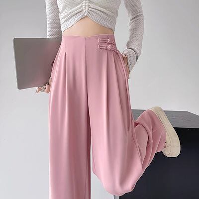 韓国ファッション パンツスーツ夏薄手 ハイウエスト レディース スーツ ワイドパンツ