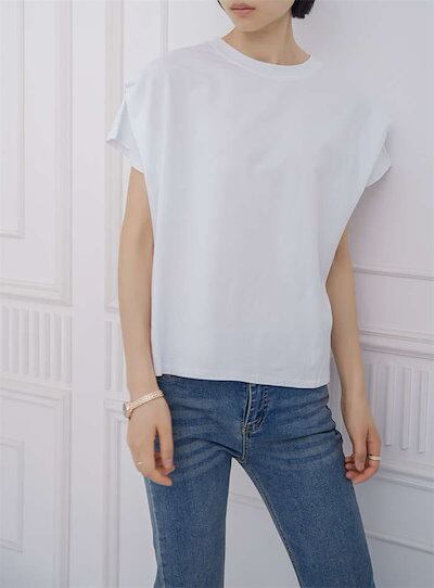 Tシャツ レディース カットソー 半袖 コットン 綿 フレンチスリーブ tシャツ トップス インナー プルオーバー スーツインナー きれいめ Uネック クルーネック 無地 ボーダー柄 ストライブ ロゴ
