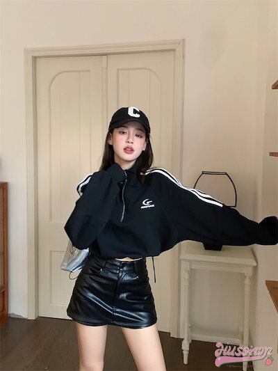 2024秋冬パーカー トップス 長袖 スウェット レディース ショート トレーナー おしゃれ カラバリ スタイルアップ 色っぽ ハーフ 女っぽ カラー カジュアル きれいめ 大人 ネック ファッション