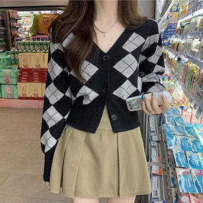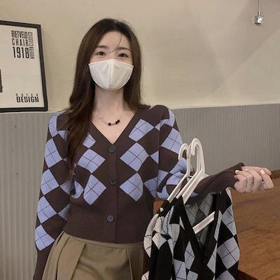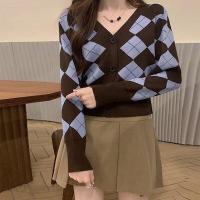 アーガイル柄 ニットカーディガン レトロ ニットカーディガン レディース アウター 秋冬 新作 ミディアム丈 羽織り ゆったり