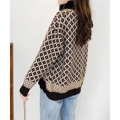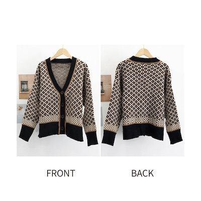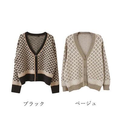 ジャガード編みニットカーディガンVネック ニットカーディガン レディース アウター 秋冬 新作 ミディアム丈 羽織り ゆったり