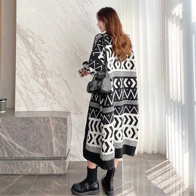 ニットロングカーディガンレディース韓国冬 ニットカーディガン レディース アウター 秋冬 新作 ミディアム丈 羽織り ゆったり