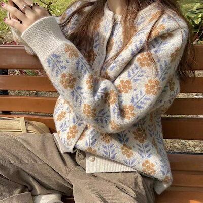 花柄 ジャガードカーディガンレディース ニットカーディガン レディース アウター 秋冬 新作 ミディアム丈 羽織り ゆったり